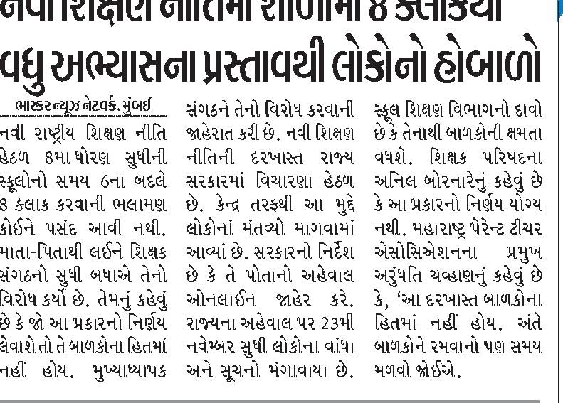 नवी शिक्षण नीतिमा शालामा 8 कलाक्थी वधु अभ्यासना प्रस्तावथी होबालो – News Report