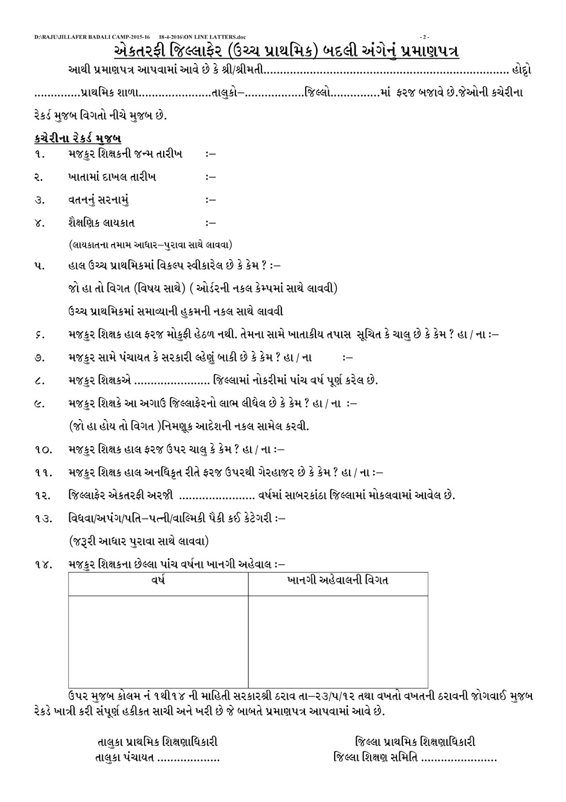Sabarkantha Ektarfi Jillafer Badli Seniority List 2016 (Std 6 to 8): Gujarat Rajyna Any Jillamathi Sabarkantha Jillama Uchch Prathmik Vibhagma (Std 6 to) Ek Tarafi Jilla Fer Badli Babat Latest Paripatra Date 05-04-2016. Sabarkantha Jilla Shikshan Samiti Hastakni Primary School Ma Uper Primary Vibhagma Jilla Fer Badli Karva Mate Gujarat State Other District Mathi Sabarkantha District Uper Primary Vibhagma Ek Tarfi Jilla Fer Badli Babate Primary Vikalp Lidhel Primary Teachers List Sambandhit Jilla Shikshan Samiti Pasethi Mangavvama Aavel Hati.