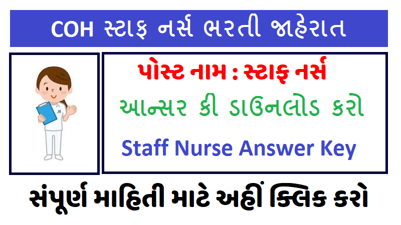 Latest (12.07.2021)– COH has released the final answer key 2021 for Staff Nurse exams. All the candidates who have appeared for the written examination can check the answer key and evaluate their marks on website gujhealth.gujarat.gov.in.