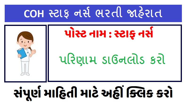 COH Staff Nurse Result 2021: Commissionerate Of Health has released the Staff Nurse Class 3 Result against the Advt.No. COH/202021/1 through the official website of OJAS. All candidates who appeared in the exam can download OJAS Staff Nurse Result 2021 by using their credentials on the official website i.e. ojas.gujarat.gov.in.