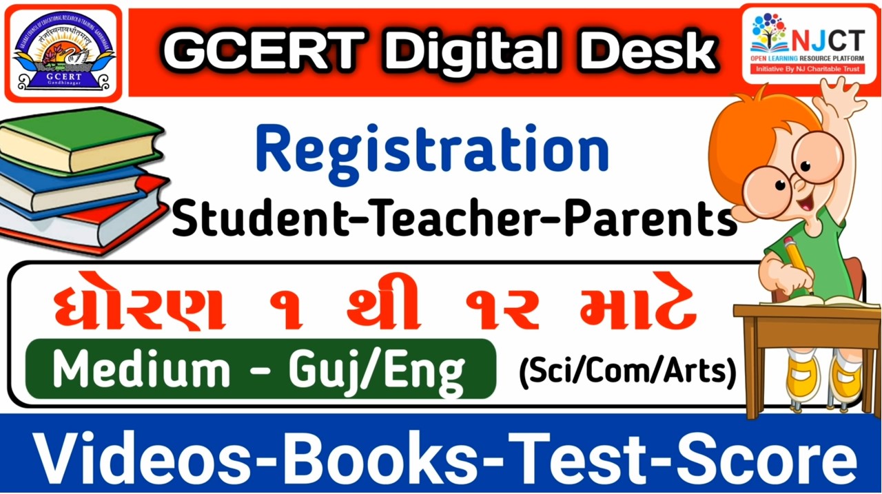 GCERT Digital Desk: Gujarat Council of Educational Research and Training (GCERT) and NJ Charitable Trust Started GCERT Digital Desk for STD 3 to 12 Students. Teachers, students, and parents can register any. Std. 3 to 12 Video, Assignment, Mock Test, and much more Available in DIGITAL DESK.
