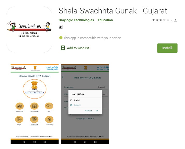 Shala Swachhta Gunak App: This app will be used for self-assessment surveys by schools. A validation survey will be conducted by the District and the state coordinators. This app is developed for the Government of Gujarat under an ongoing project for improving school sanitation. The app will be used for purely academic purposes of collecting information on school sanitation and training teachers on sanitation.