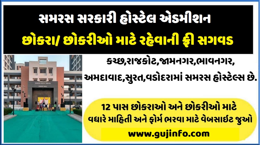 Latest – Samaras Chhatralay Admission Form link is activated now. Candidates can apply online through official website – samras.gujarat.gov.in.