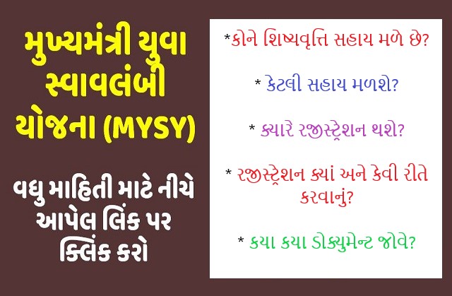 Gujarat Mukhyamantri Yuva Swavalamban Yojna (MYSY) Online Registration - Gujarat Rajyma Aavel Many Board Mathi Std-10 or Std-12 (General/Science) Ni… Read More